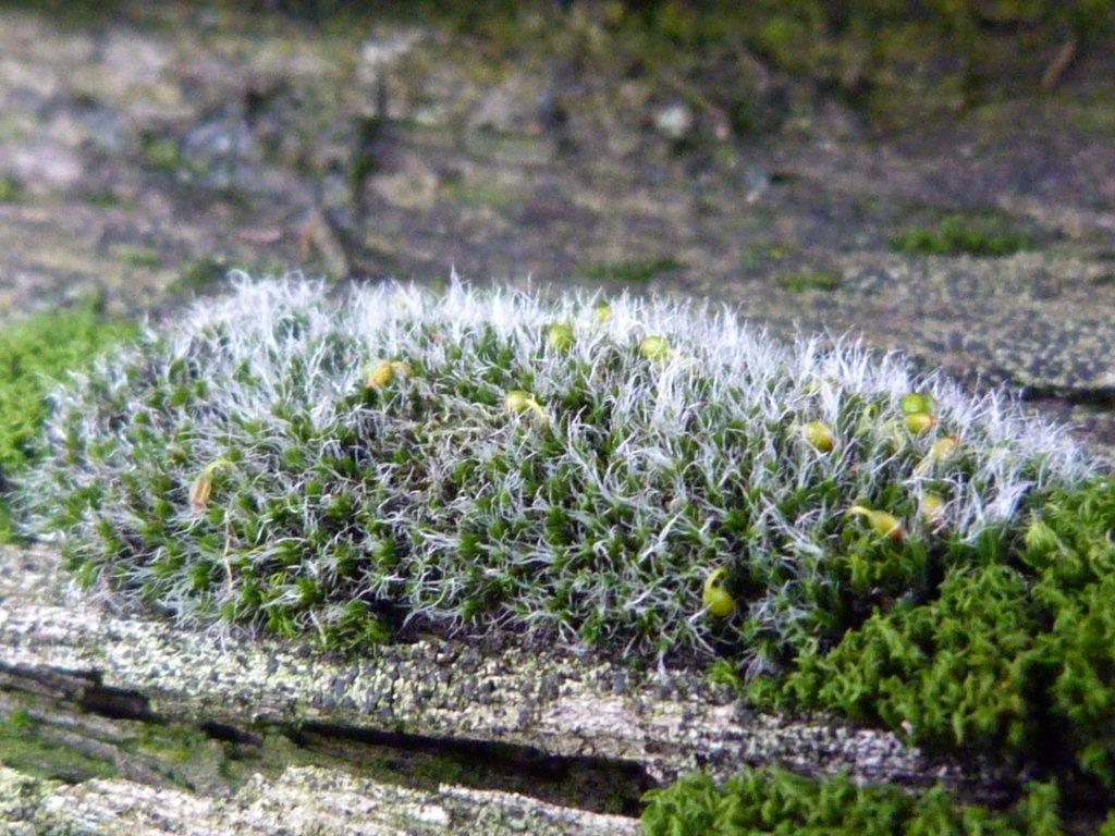 In the afternoon, another walk produced a few mosses, one of which I was happy to identify as Grey-cushioned Grimmia Grimmia pulvinata - very common apparently but new for me. However, I failed on the moss that was right next to it, on the fence of the local muckheap. I did soon find a Brown Hare squatting low in a furrow in a field, and then also took some photos of a black fungus on an oak snag which might be Exidia plana.
